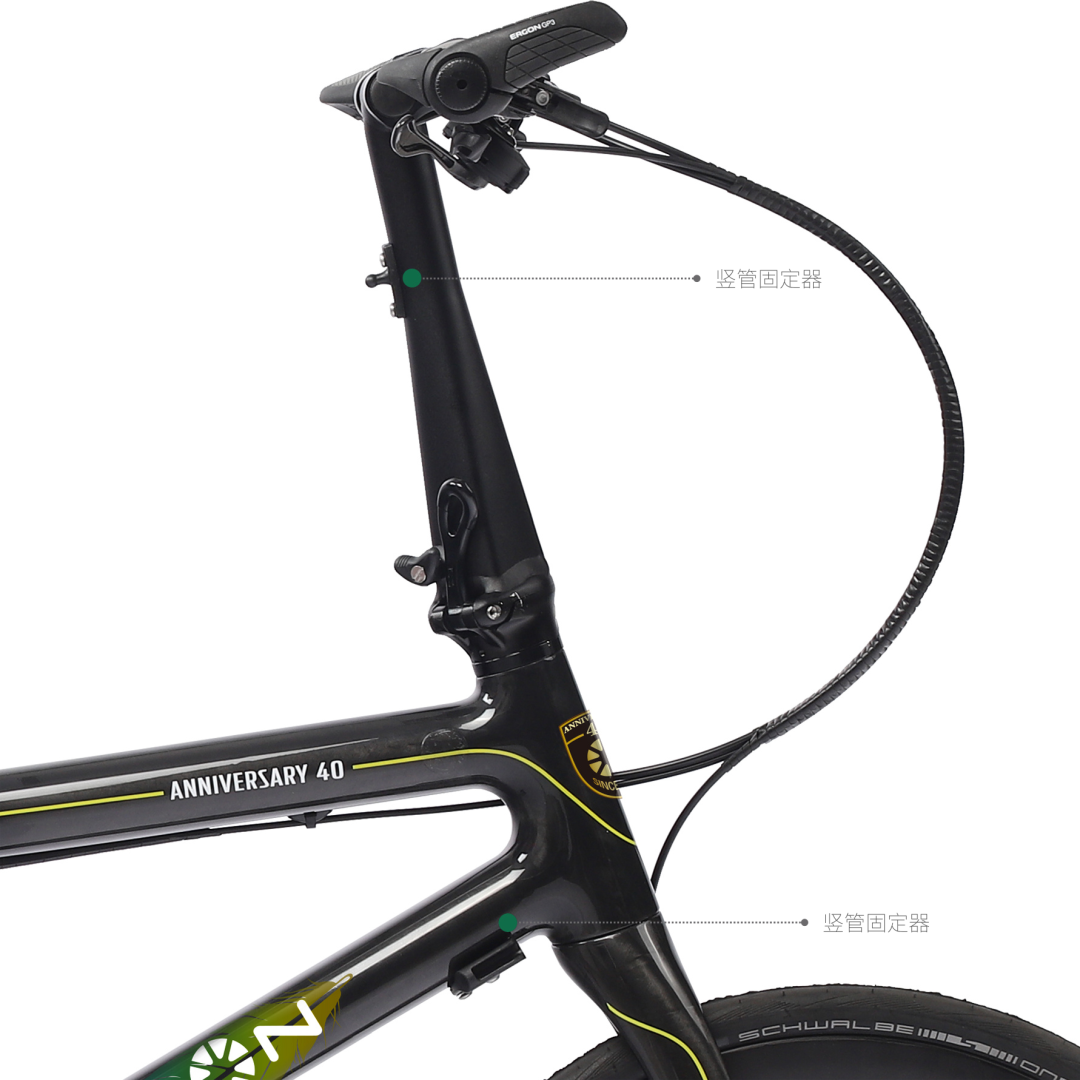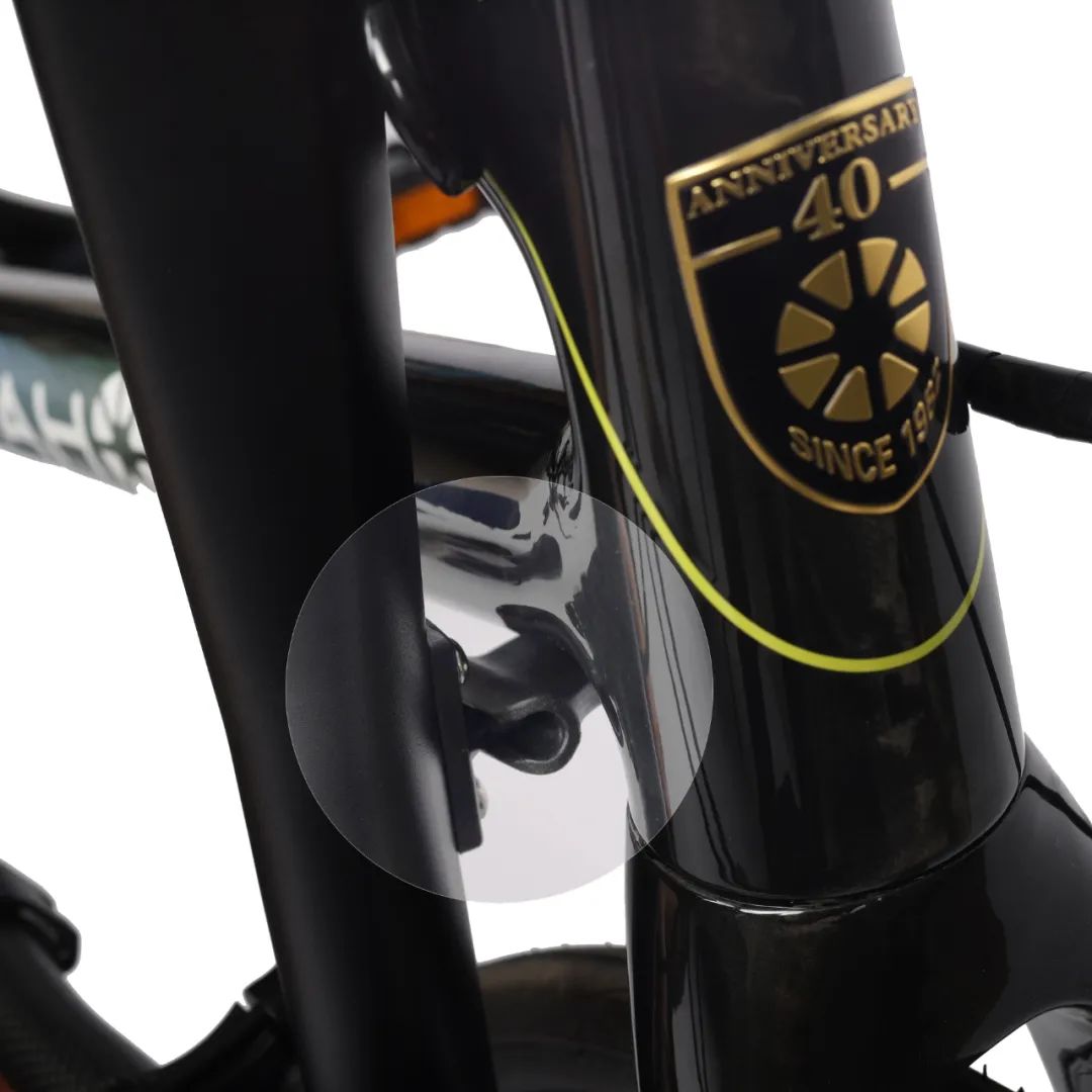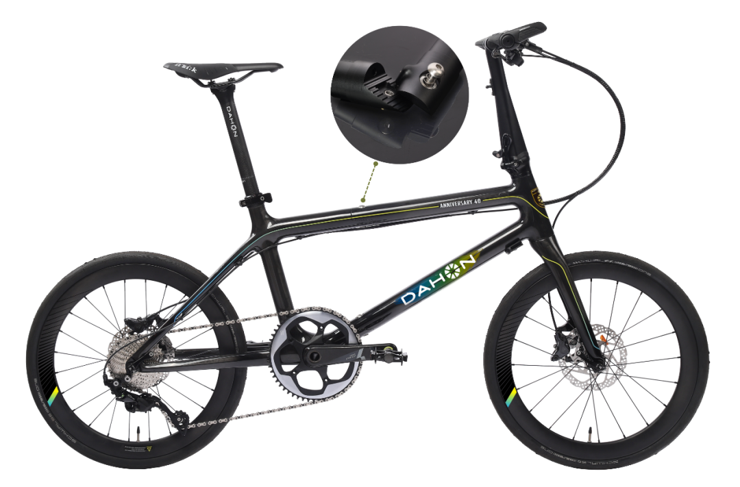 为了突显该车经典传承与周年纪念的装饰元素,将配以经典盾牌 + “40”字样为灵感的金漆车标,象征DAHON品牌40年来在自行车产业代表的中坚力量,熠熠生辉、绽放异彩!