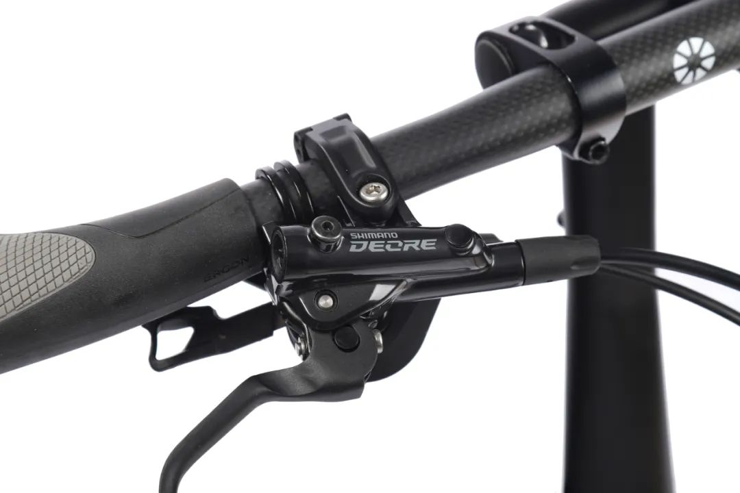 SHIMANO DEORE油压碟刹,完美兼容其他高级组件,制动力随捏随停,达到赛级标准;