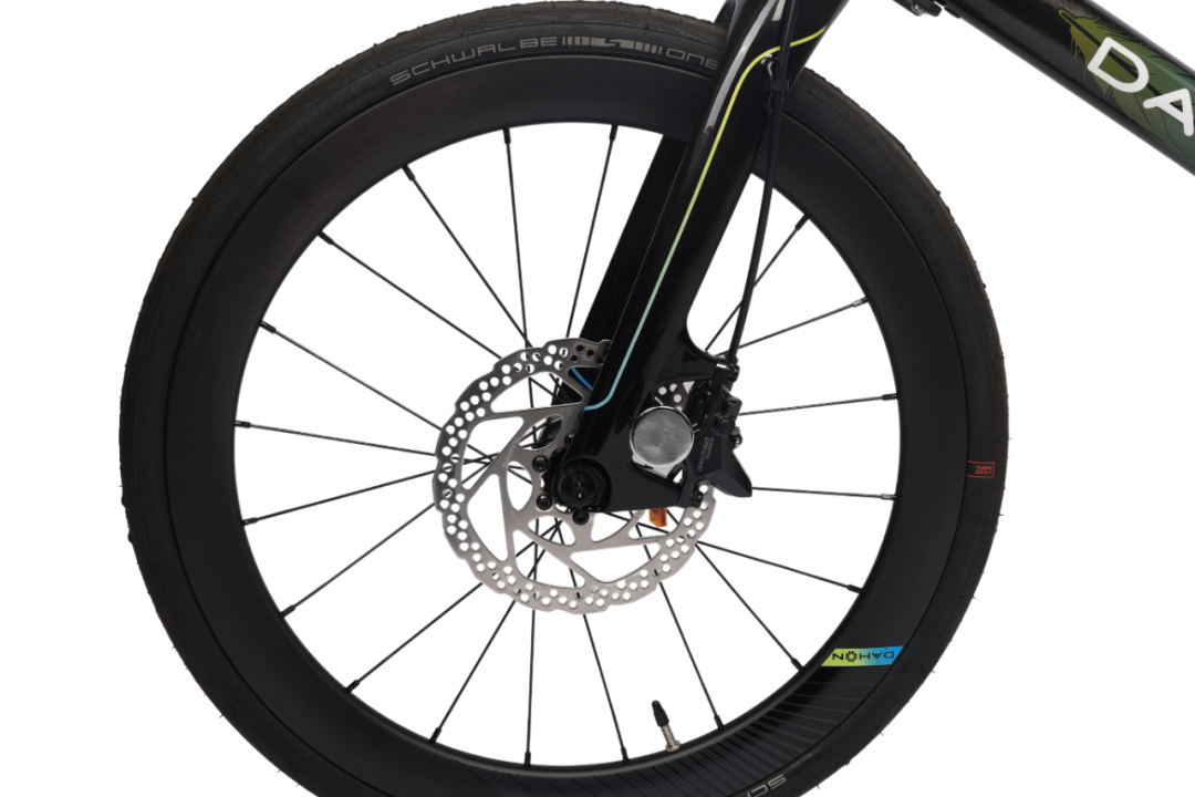 ODB015整车重量不高过9.5kg,车架仅重1710g',前叉410g,但却可承受100公斤的重量。几乎所有部件都100%碳纤化,特别采用了进口航空级碳纤维布,高温增韧树脂,再经过多道技术工艺后,才制成了这辆超轻的碳纤维折叠车。可以说,ODB015是DAHON第一台轻量碳纤维折叠车。