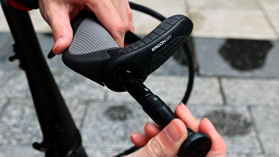 ErgonGP3人体工学牛角(人间肉球)把套,来自德国制造的防滑橡胶手柄,由三部分组成的内翼具有不同的壁厚,可根据个人骑行角度需要,独立调整握把和副把,为手掌心提供更多舒适度;