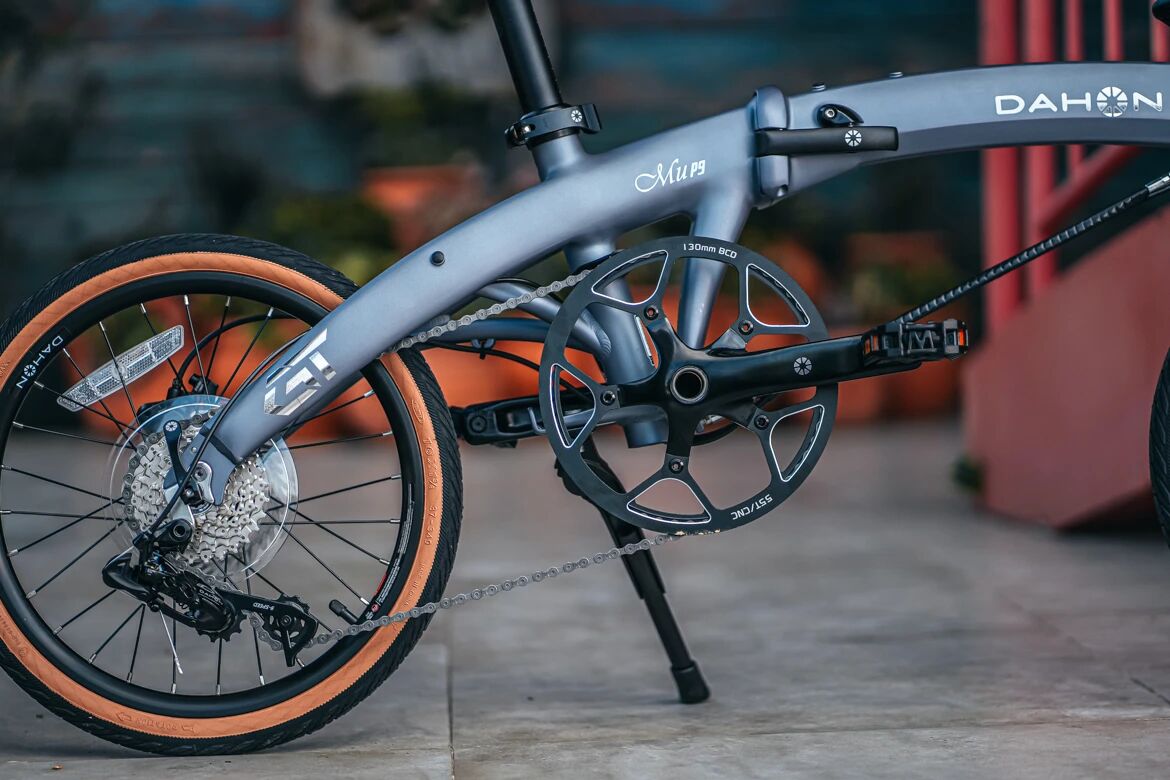 MU P9配备大行定制的349铝合金培林轮组,相较于传统16寸直径更大,通过颠簸、减速带等路面更稳定。车圈可承受高气压,迅速制动时骑行平稳舒适,兼顾高效骑行与便携性。前叉勾爪角度精心设计调整,组装后与前花鼓配合度更好。