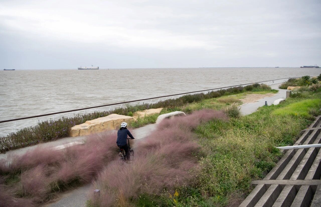 在湖边绿道骑行,路况多以平坦柏油与部分细砂路为主,P8 的表现依然令人满意。