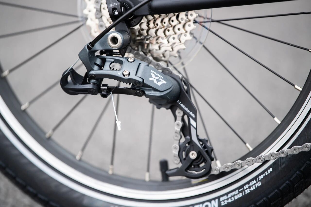 SARM X7 8速变速系统,装配53T链盘,搭配11-32T后飞轮,起步轻快,蹬踏有力。