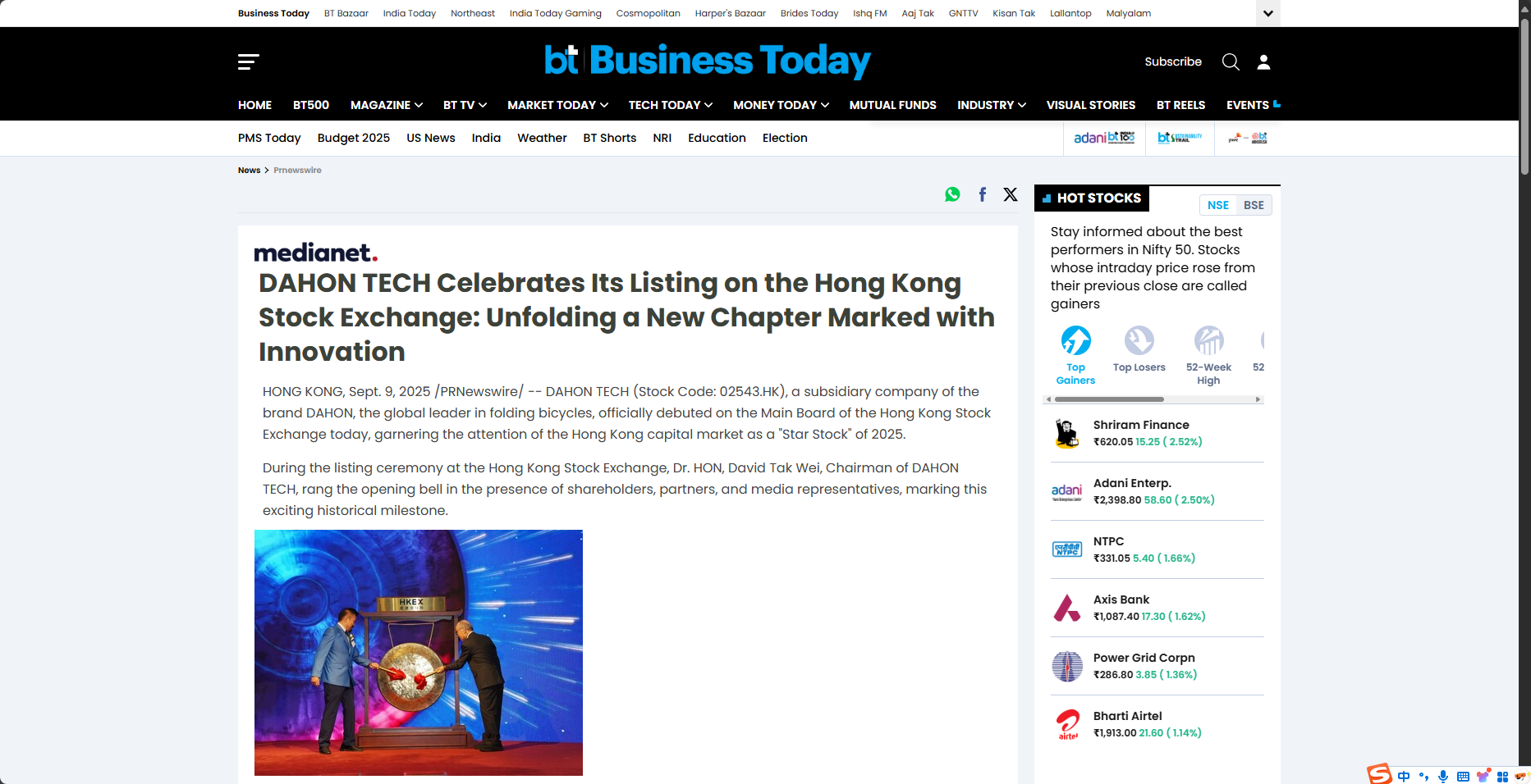 该品牌的子公司大行科工(Dahon Tech)以其设计巧妙、品质优良且易于存放和运输的自行车而闻名,于9月在香港联合交易所主板正式上市。