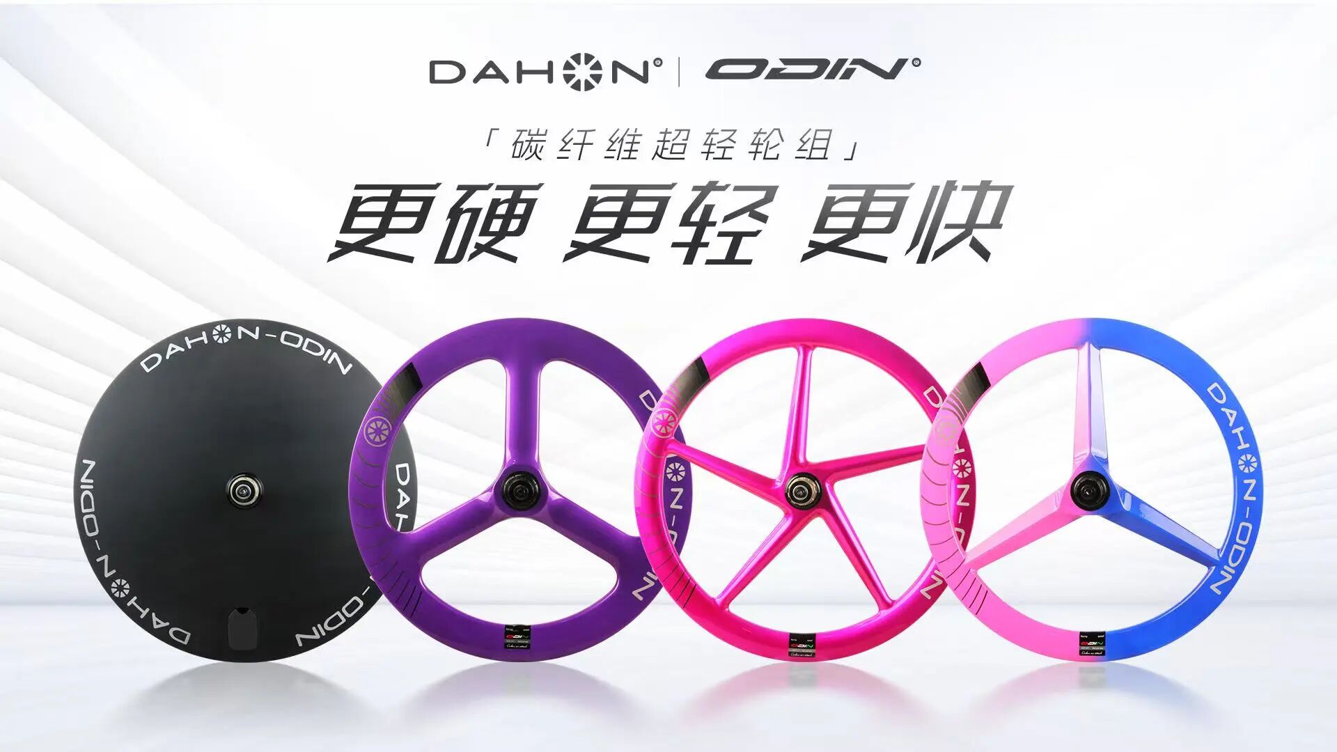DAHON-ODIN大行奥丁双品牌碳纤维轮组,主要是针对大行骑友对三级车到五级车的个性改装和减重升级需求而推出的高性能碳纤维轮组产品。产品有碳纤维三刀轮、四刀轮、五刀轮、封闭轮、钢辐条和碳辐条碳纤维轮组,产品规格包含16寸轮组(349)和20寸轮组(406 &451)。
