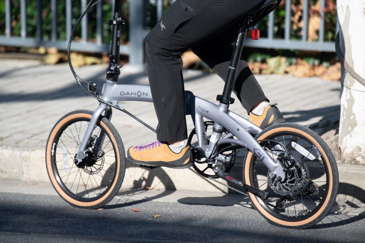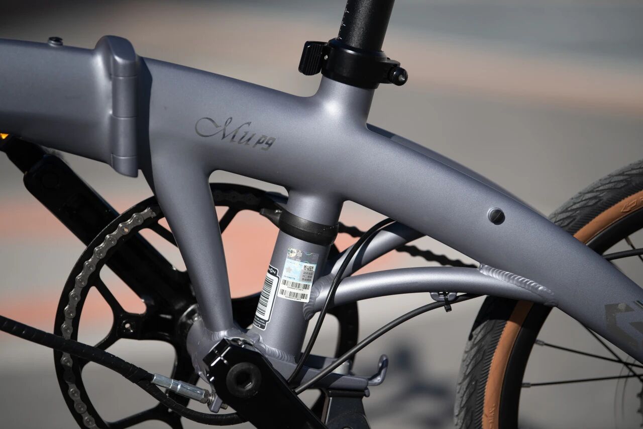 MU P9的骑乘体验给人最深的印象,就是高效的骑行性能与速度感,但又有超出预期的“稳”。作为一辆349轮径的小轮折叠车,它本应拥有天生的灵巧属性,而DELTECH马甲线与超级下管带来的结构强化,让整车拥有接近“大车级别”的稳定感:起步轻快、加速线性,巡航时脚下力量传递直接,车身反馈扎实,没有小轮车常见的“漂浮感”,在绿道中穿行的灵活感依然在线。整体呈现出一种“灵动与稳定共存”的平衡,这是 MU PRO 在骑行体验中的最大魅力。