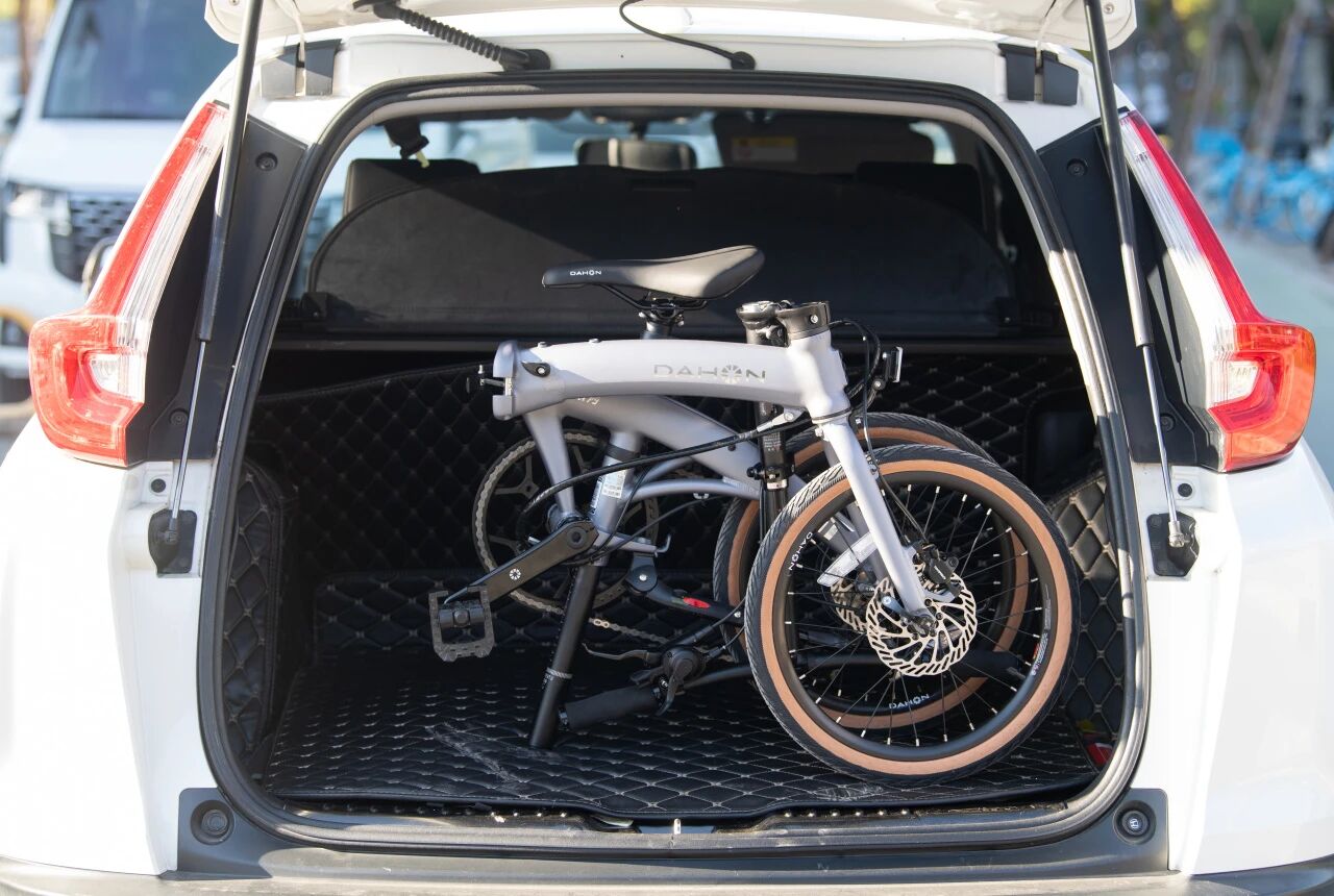 而这种美感并非徒有其表,P车架同样带来了恰到好处的便携性:折叠后体积小巧,放入后备箱十分轻松,真正兼顾了都市通勤的实用需求。这款车型将结构美学与便携效率自然融合,让折叠车不仅好骑、更好看、更好带。