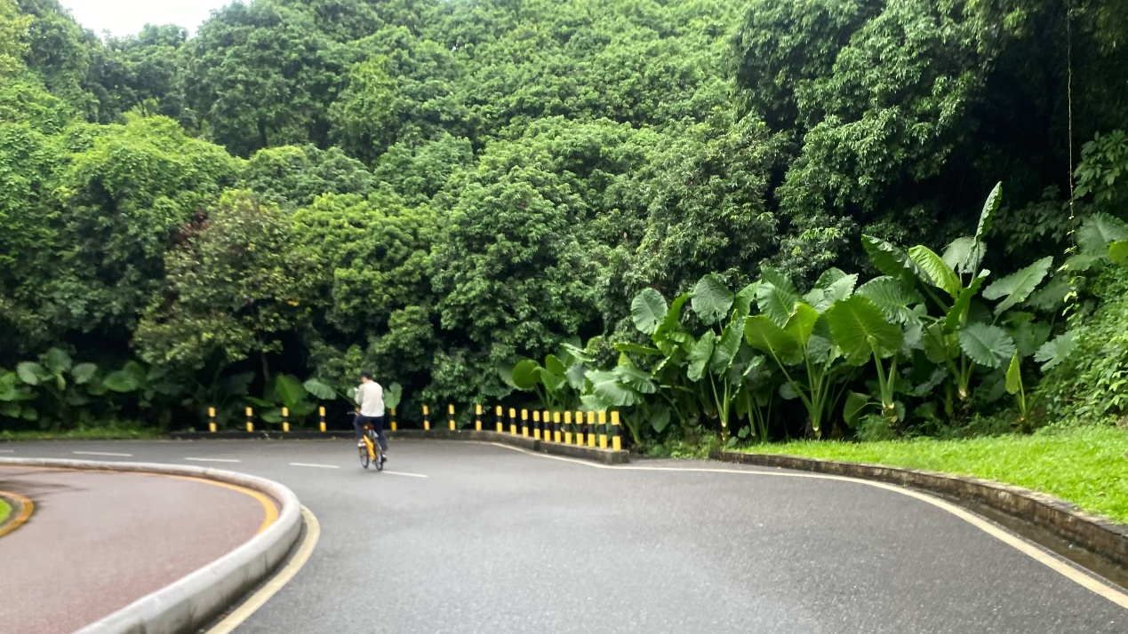 整体坡度较缓,距离适中,骑行和动车道分开,靠山全程有树荫,非常适合新手。