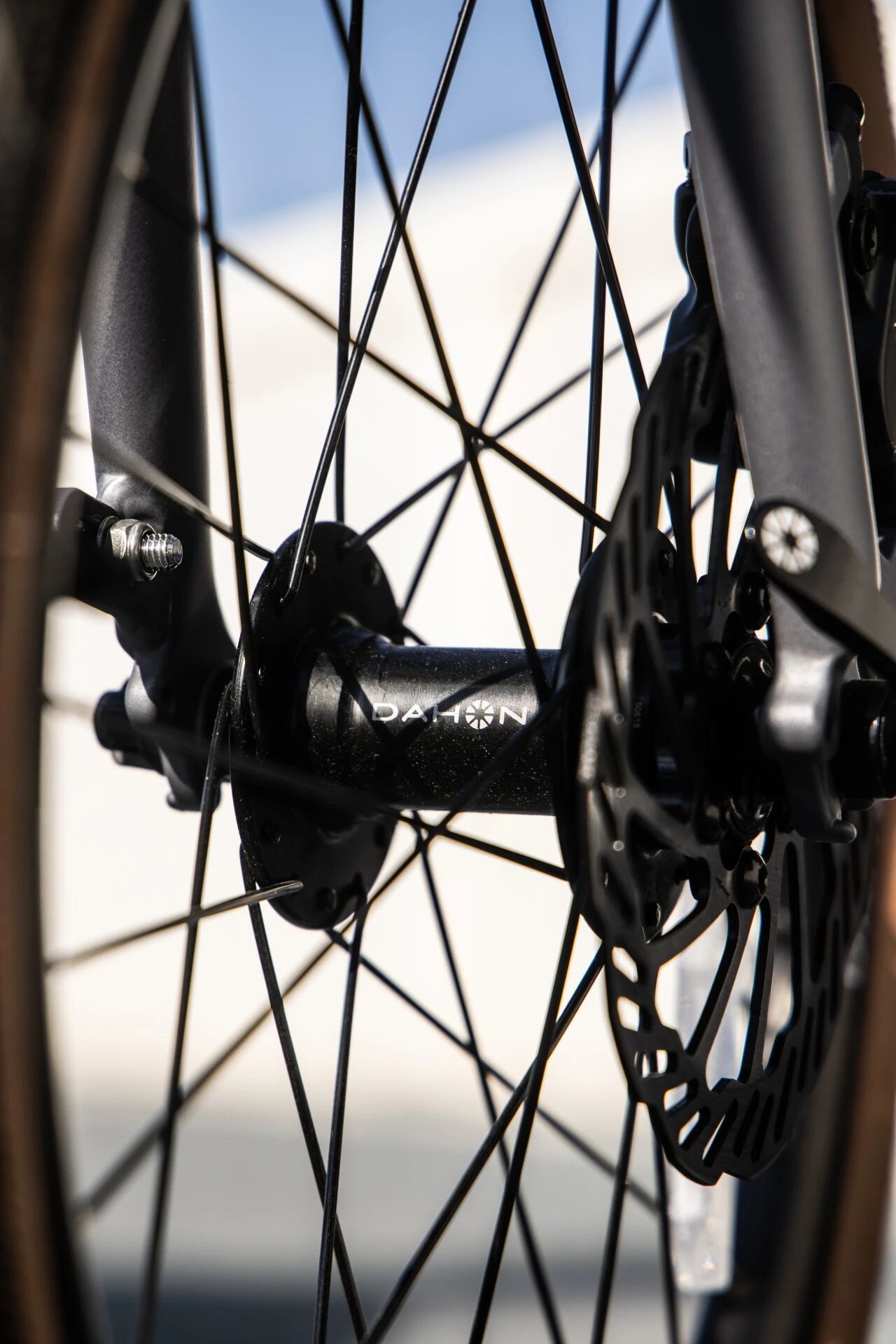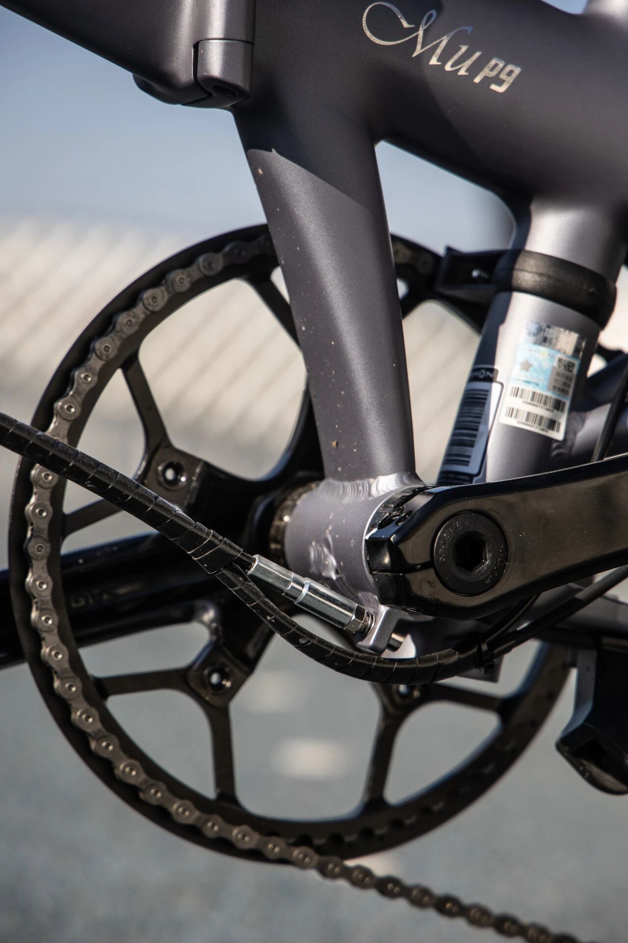升级建议:作为主打城市中短距离通勤的MU P9搭配的是更稳的定制349铝合金轮组,对比16寸更大,如果还想提速或者换舒适性更好的宽胎,可以满足406规格用户的不同需求,大行也专门预留接口,前后叉的开档也兼容更大胎宽的轮胎。