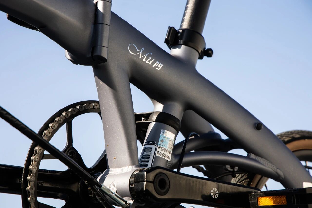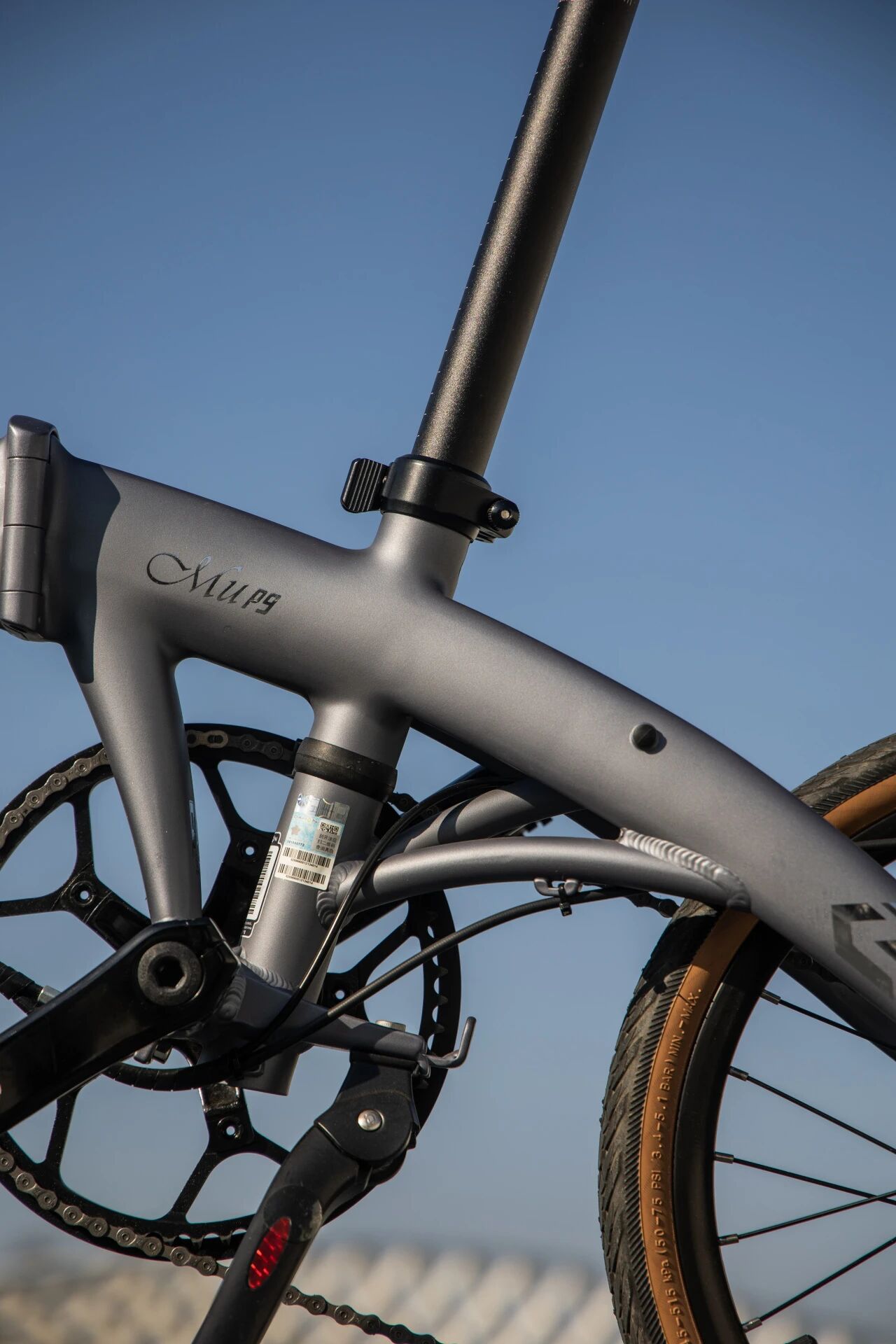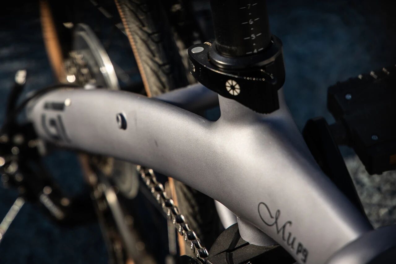 骑行体验之四,更轻更紧凑,同样采用海豚车架的MU P9没有了传统后下叉,折叠时不仅双节竖管内折速度更快,而且节省折叠空间,而且前叉碟刹前置,进一步缩短内折走线便捷性,此外,座管、竖管紧固舒环人性化设计,更适合女生操作,提升折叠效率。