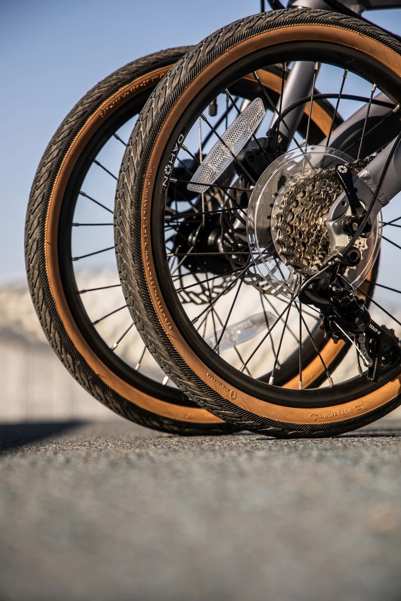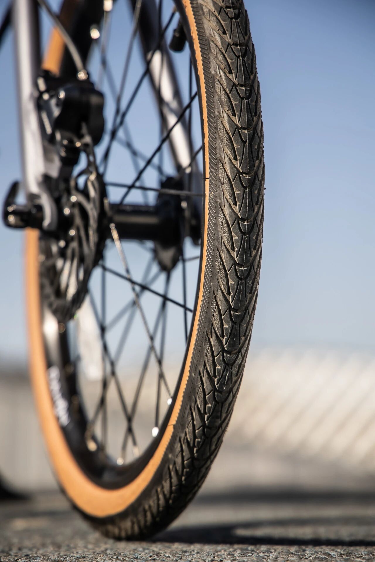 MU P9配备了一对独具美感的棕边胎,搭配整车的纯灰涂装,更彰显整车运动骑行风格,视觉上也更加个性化。