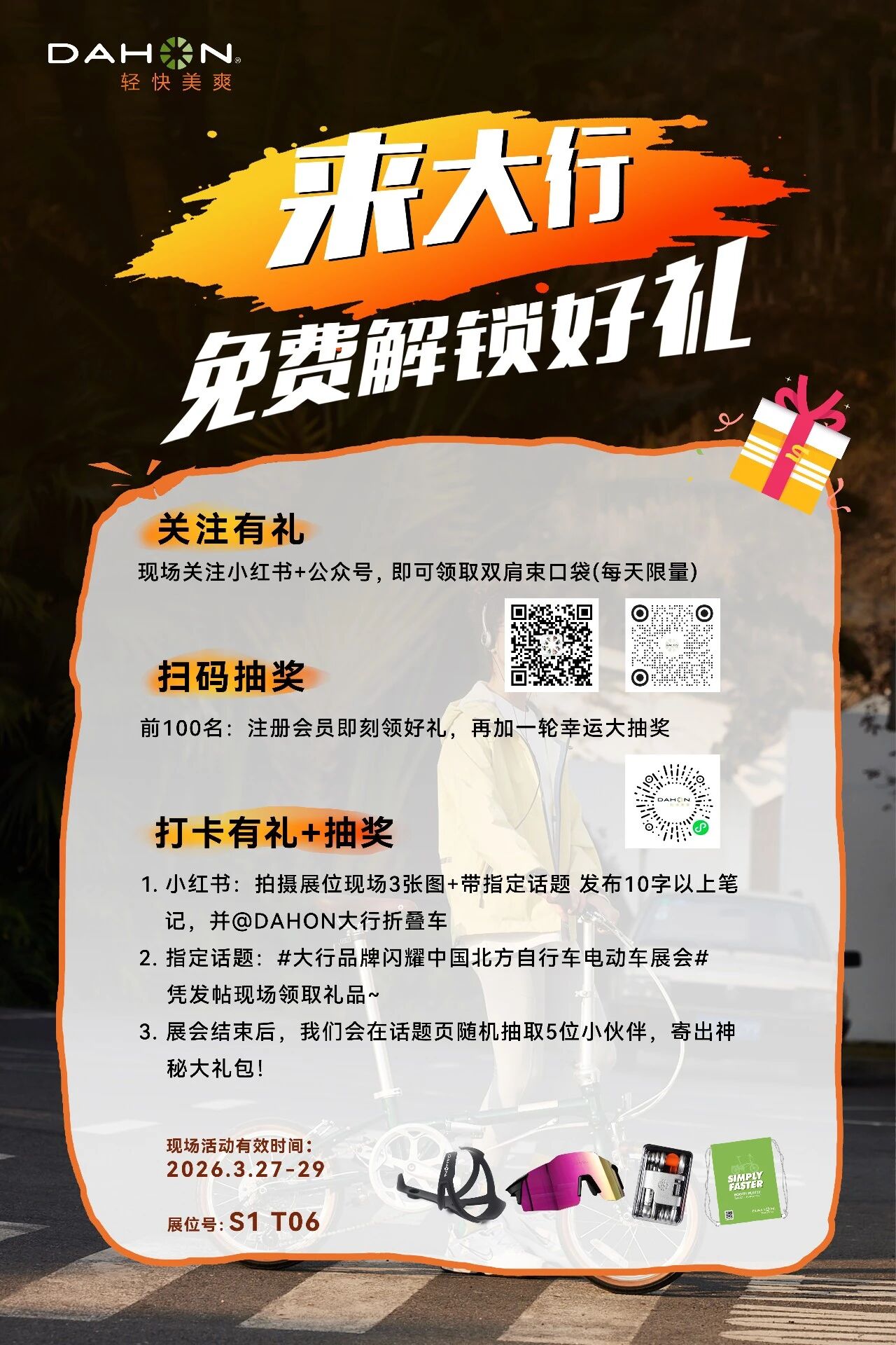 关注公众号【DAHON大行折叠车】及小红书账号【DAHON大行折叠车】,不仅能第一时间获取展会最新动态,还能参与现场惊喜抽奖活动,多重好礼等你来拿!机会难得,千万不要错过~