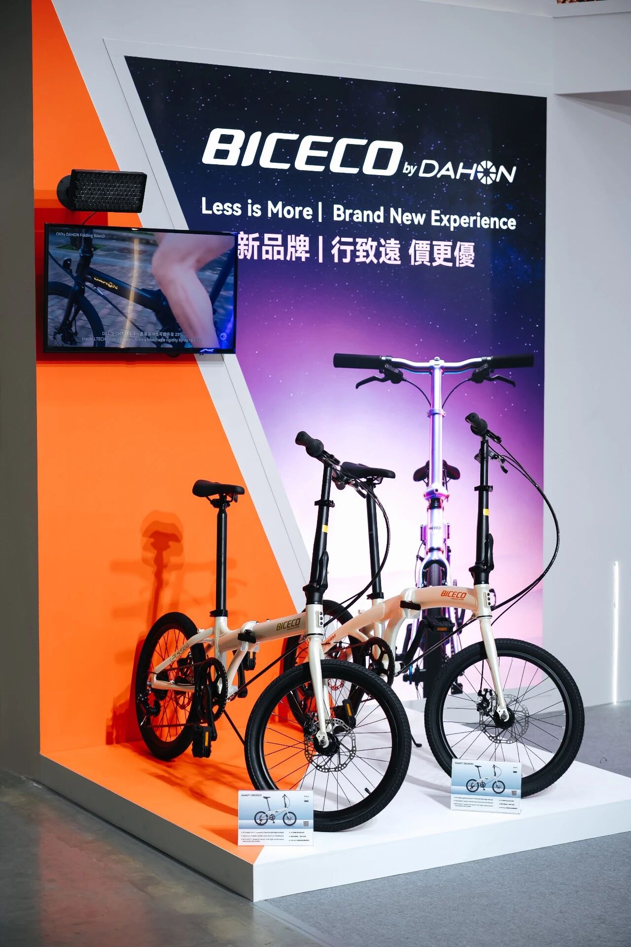 DAHON大行亮相1馆4楼【L0112】展位,展出涵盖折叠车、公路车、电助力等多类别“快车道”技术新品,大行全新子品牌BICECO新品也首次在大展上亮相。