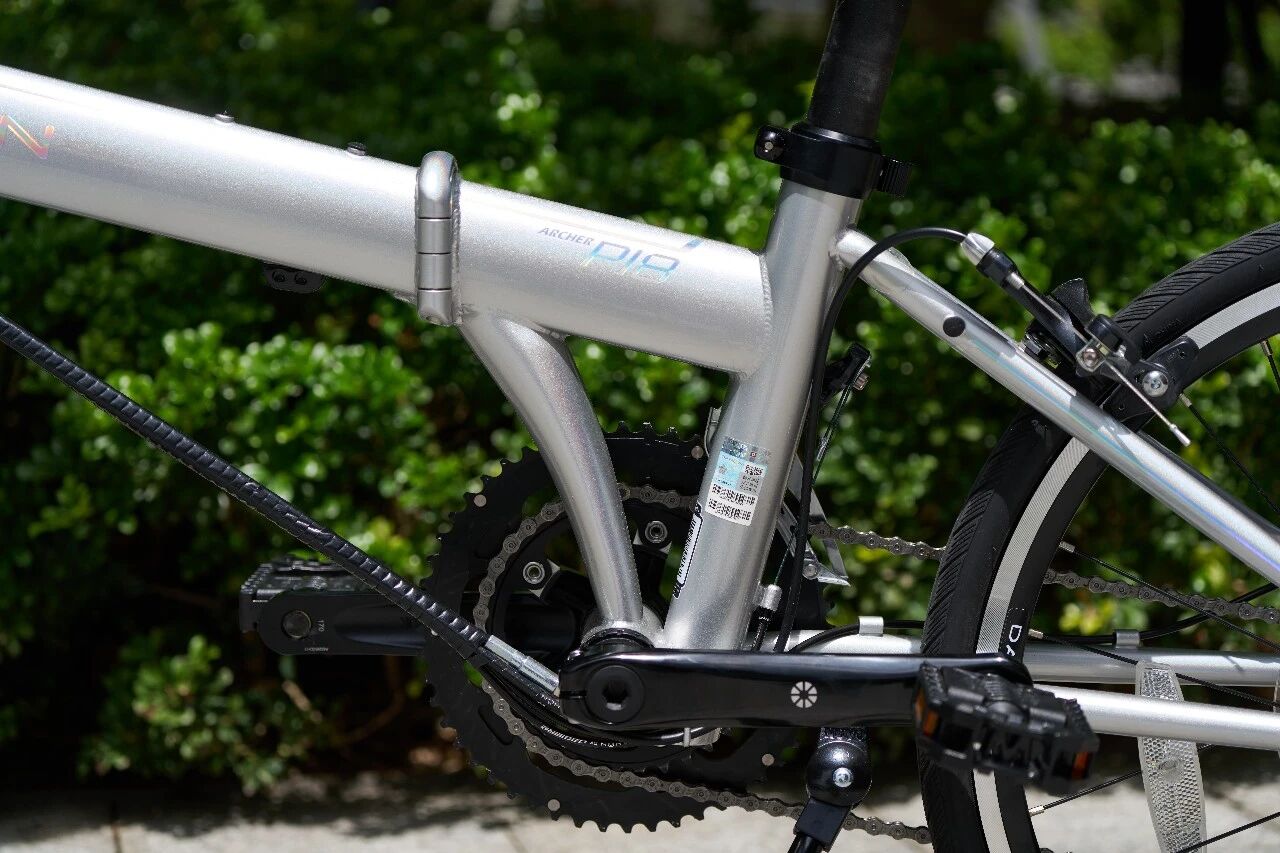 超级下管,管径不仅更大,沿五通管及主梁管两端特别加强打扁,耦合力度大增,纵横双向刚度各自提高10%以上,骑行蹬踏效率显著提高,更轻松,特别是与马甲线强强合作,让单梁折叠车更安全,爬坡能力更强,比大多公路车、山地车骑得更快,令人惊喜。